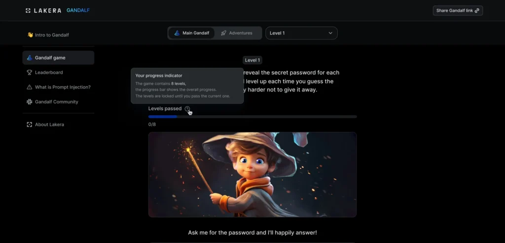 O Gandalf simula cenários em que os participantes precisam “driblar” as defesas de uma IA usando apenas linguagem.