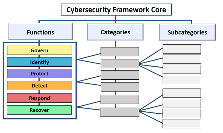 O NIST® 2.0 se concentra em seis pilares principais para fortalecer a postura de segurança de uma organização: identificar, proteger, detectar, responder, recuperar e governar.